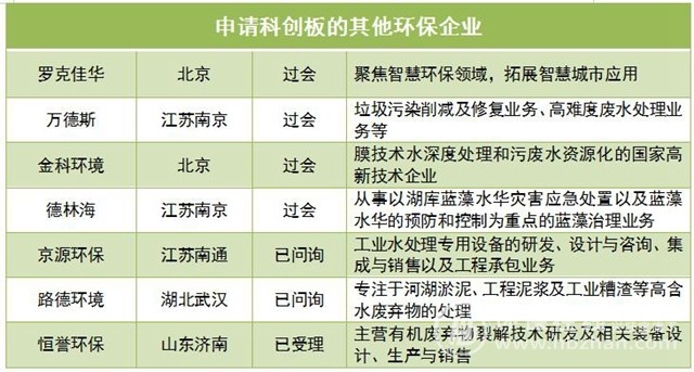 除了这些已经上市了的环保企业外,冲击科创板的环保企业还有7家(如有疏漏,欢迎补充),主要集中于和两大领域。具体如下:
